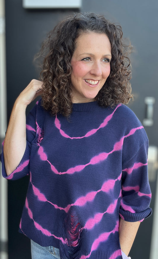 Distressed Navy & Pink Sweater