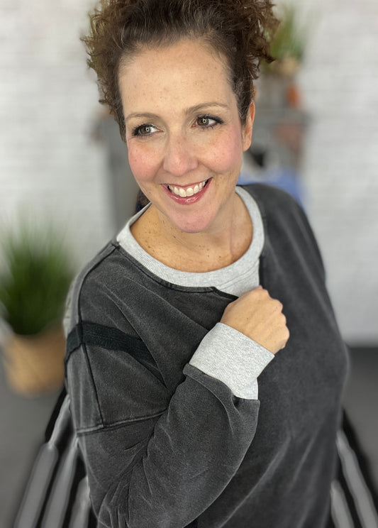 Washed Sweatshirt with Contrast Trim