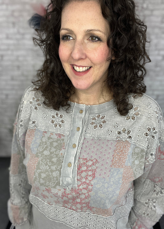 Vintage Patched Floral and Eyelet Top