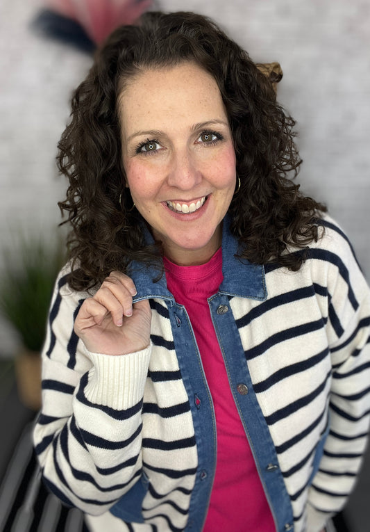 Striped Cardigan with Denim Trim