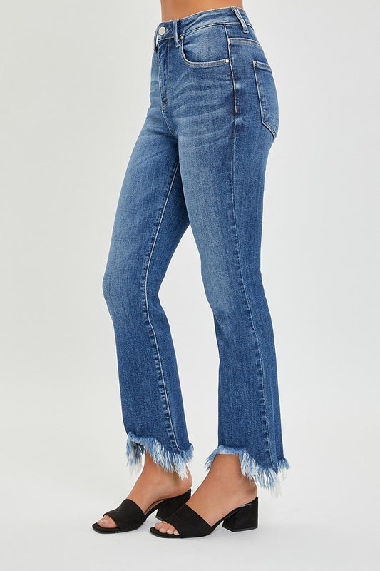 Sold outRISEN Frayed Hem Ankle Bootcut Jeans