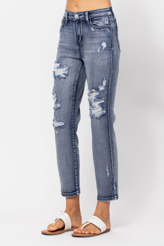 JUDY BLUE Vintage Wash Distressed Boyfriend Jeans