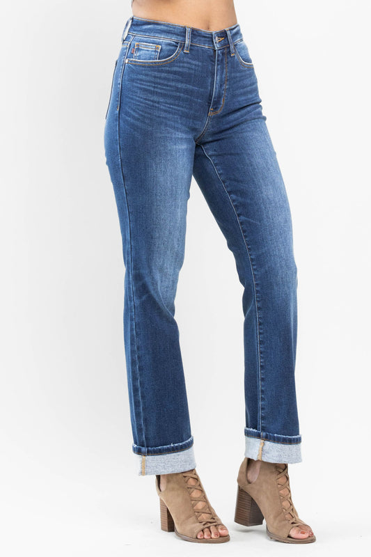 JUDY BLUE Contrast Wash Thermal Straight Jeans