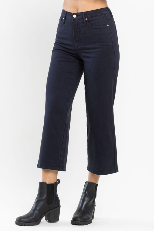 JUDY BLUE Tummy Control Navy Wide Leg Crop Jeans