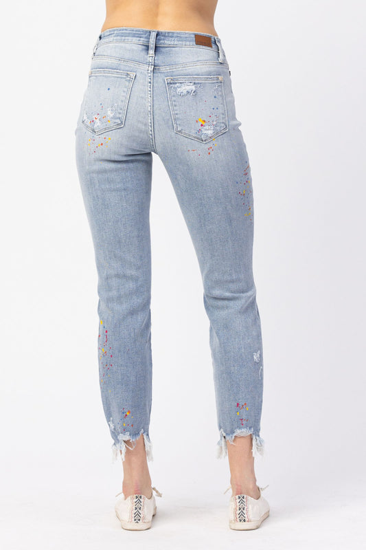 JUDY BLUE Distressed Paint Splatter Boyfriend