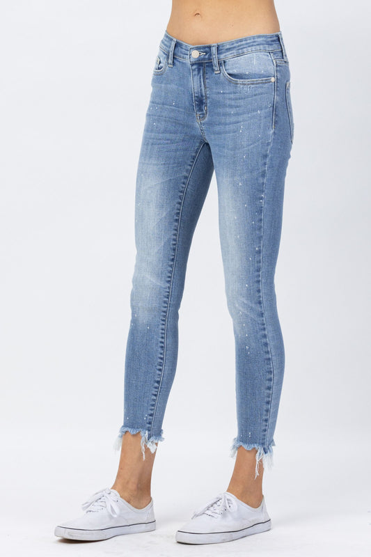 JUDY BLUE Bleach Splash Shark Bite Skinny Jeans