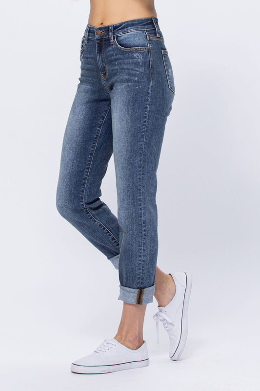 JUDY BLUE Double Cuff Boyfriend Jeans