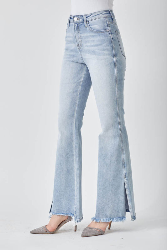 JUDY BLUE Mid Rise Frayed Edge Wide Leg Jeans