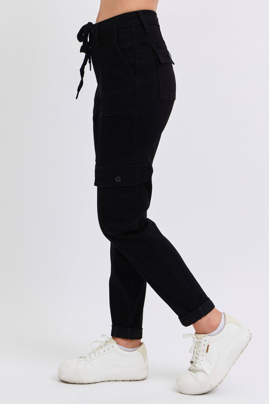 JUDY BLUE Black Cargo Cuffed Jogger Jeans