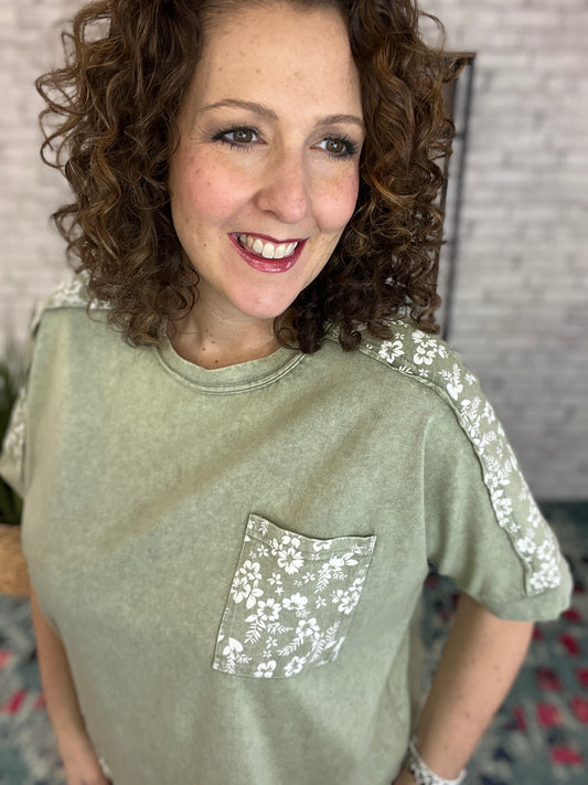 Faded Floral Accent Top
