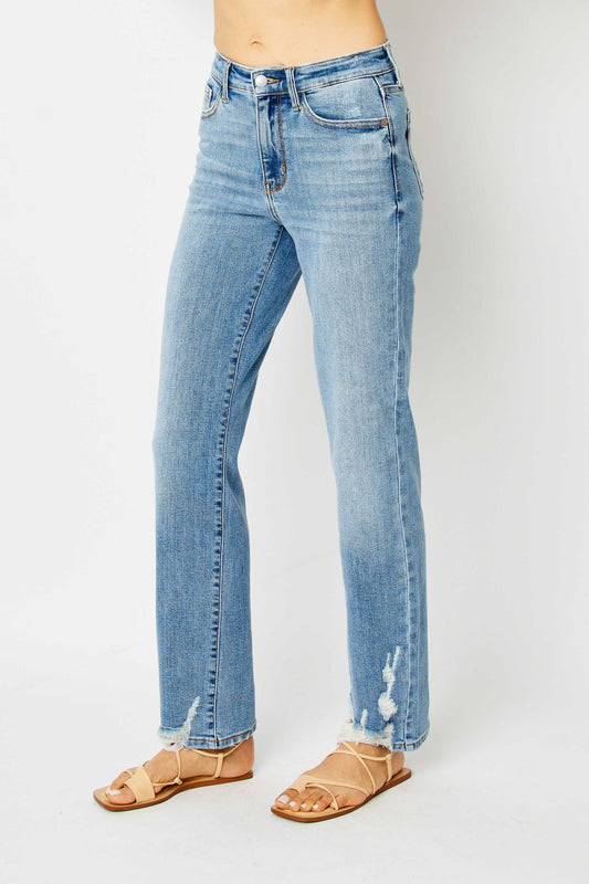 JUDY BLUE High Waist Straight Jeans with Distressed Hem