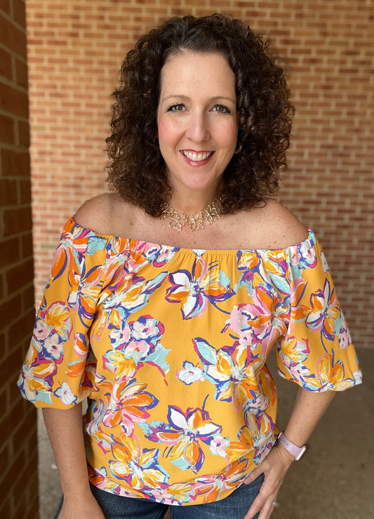 Painted Floral Off the Shoulder Top