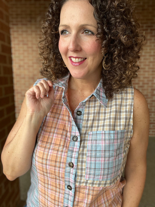 Vintage Plaid Colorblock Sleeveless Top