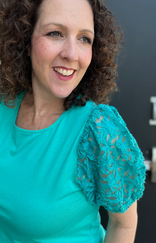 Flower Lace Puff Sleeve Top