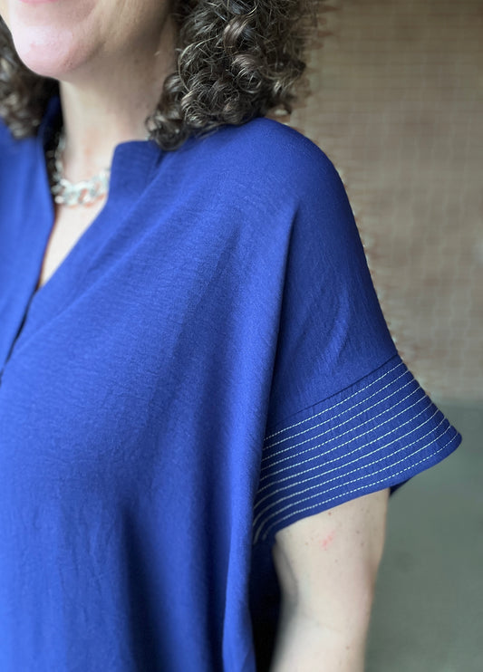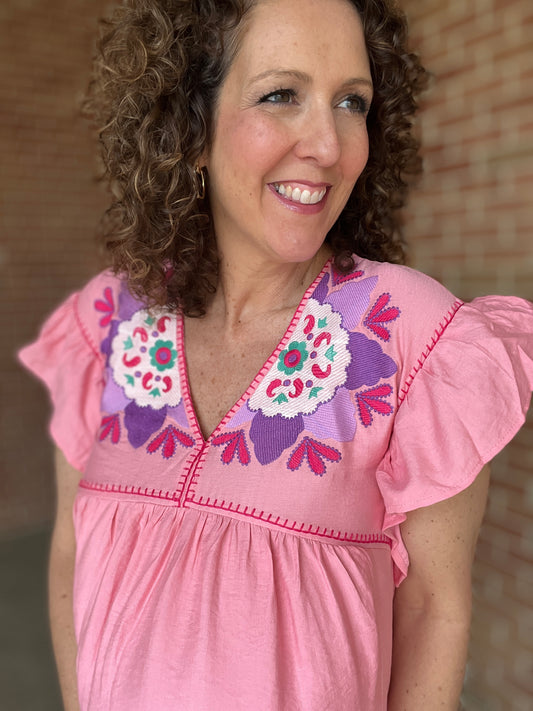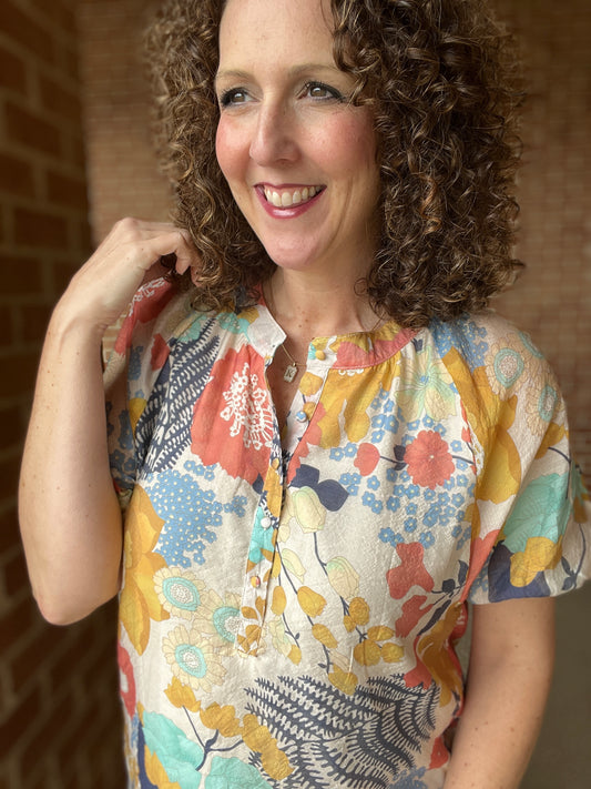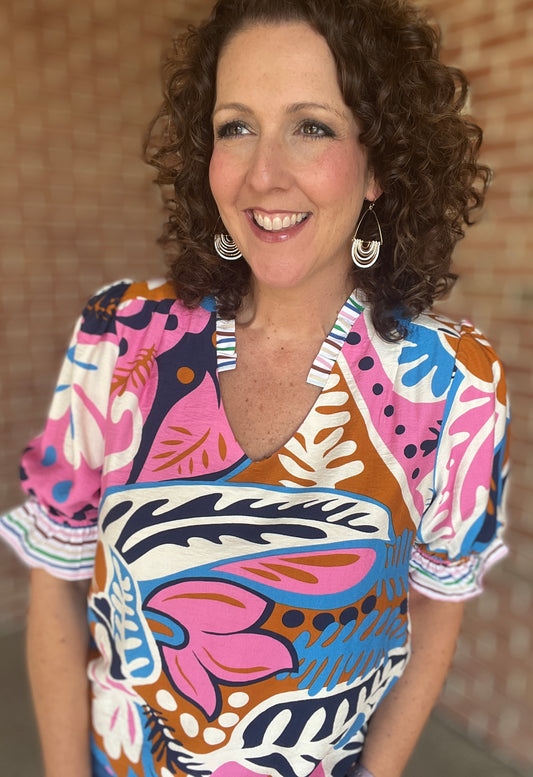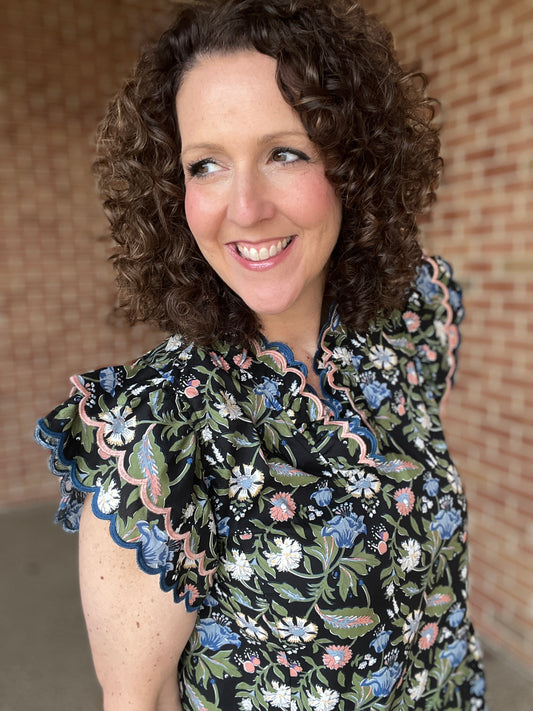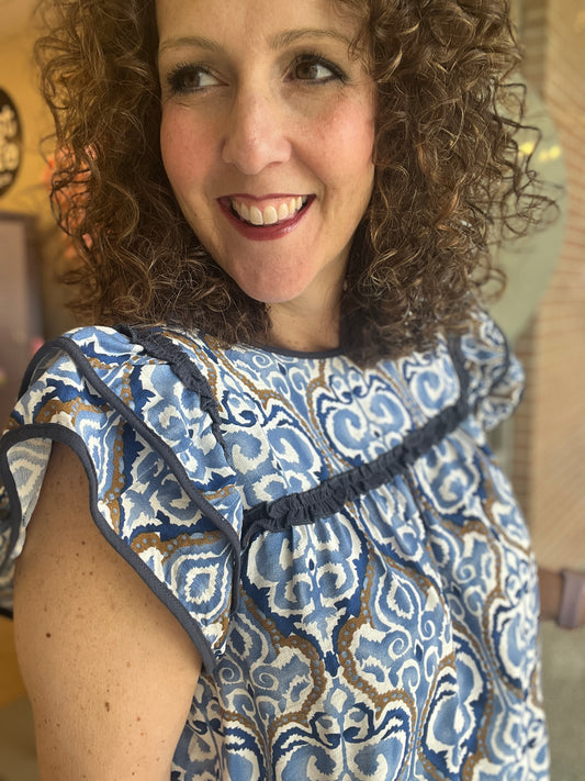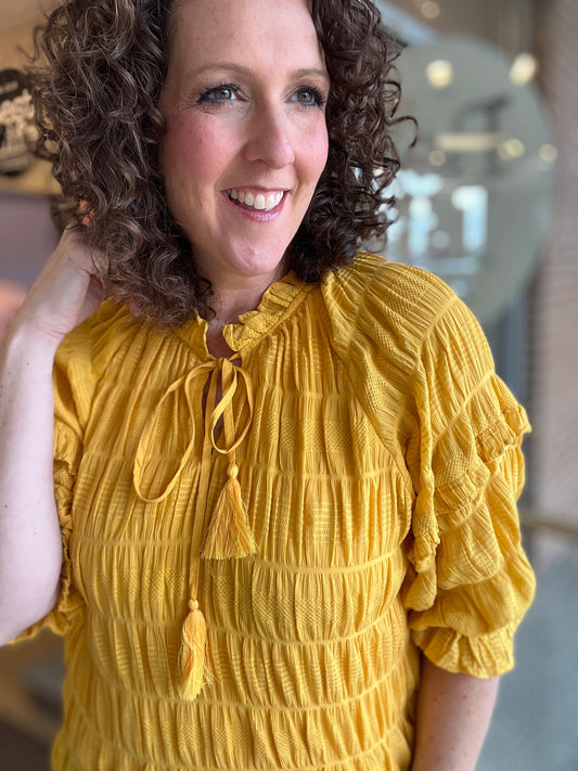 Ruffled Half Sleeve Top with Tie & Tassel Detail