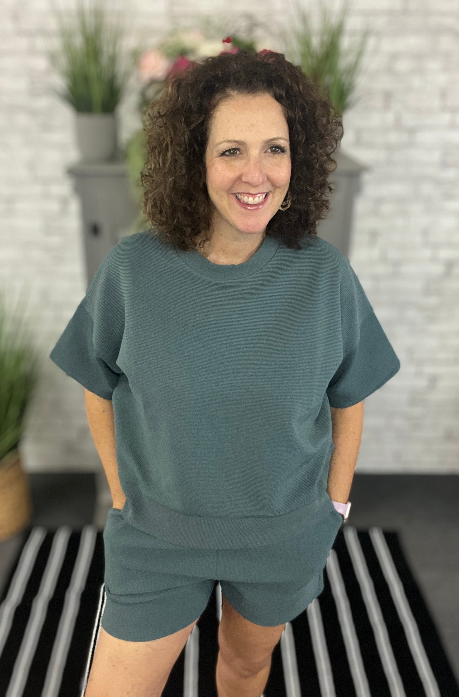WOAH! This set SCREAMS designer! This top and shorts set looks so chic, your friends will ask where you found it. With a relaxed fit and amazing fabric, these pieces will surely be ones you reach for over and over - whether worn together or separately!