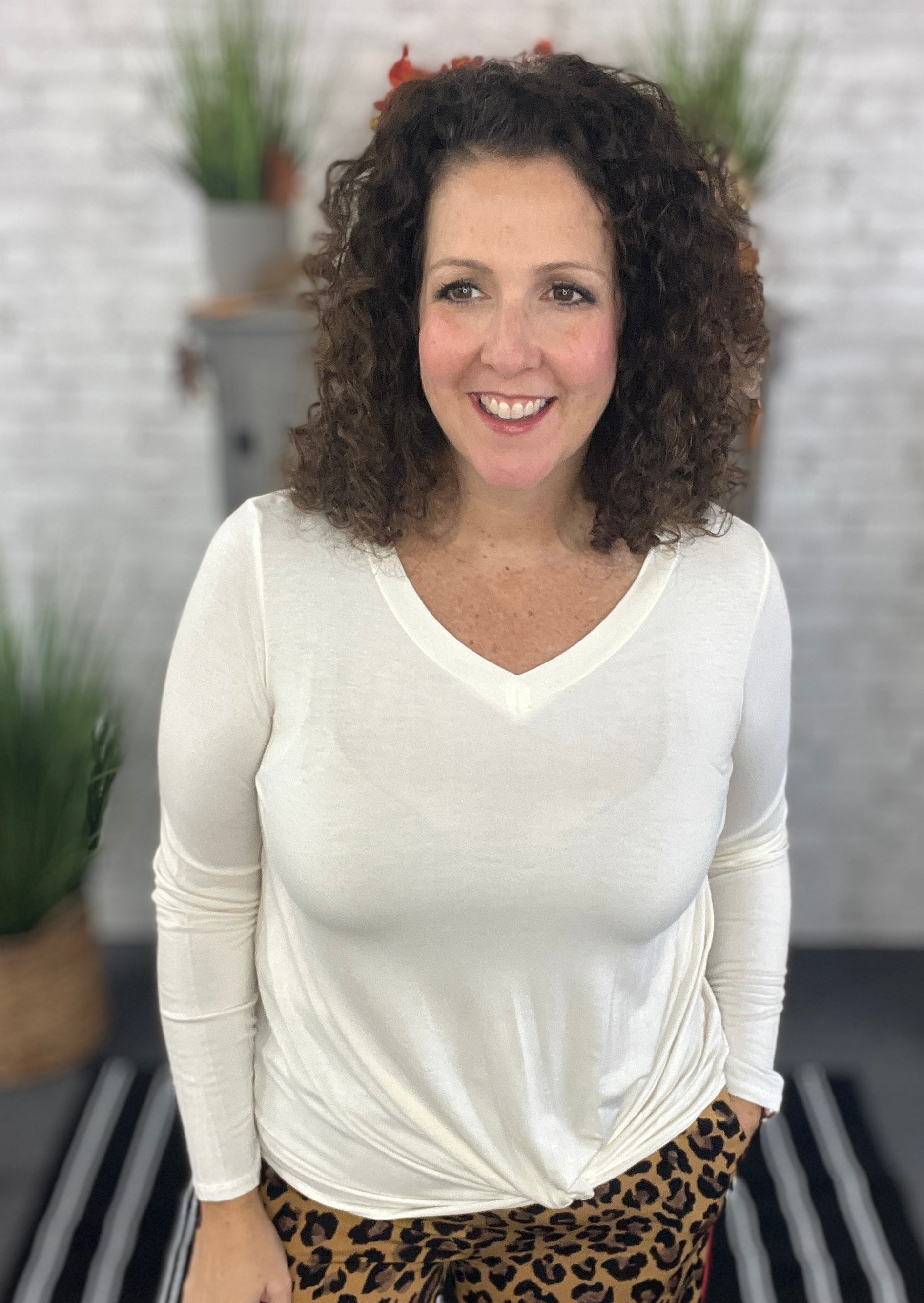 This playful Knotted Front Basic Top adds a fun twist to your everyday look with its trendy knotted detail at the front. The stylish V-neck flatters your neckline while keeping it casual and chic. Perfect for pairing with your favorite jeans or skirts, it’s a versatile essential that’s anything but basic!