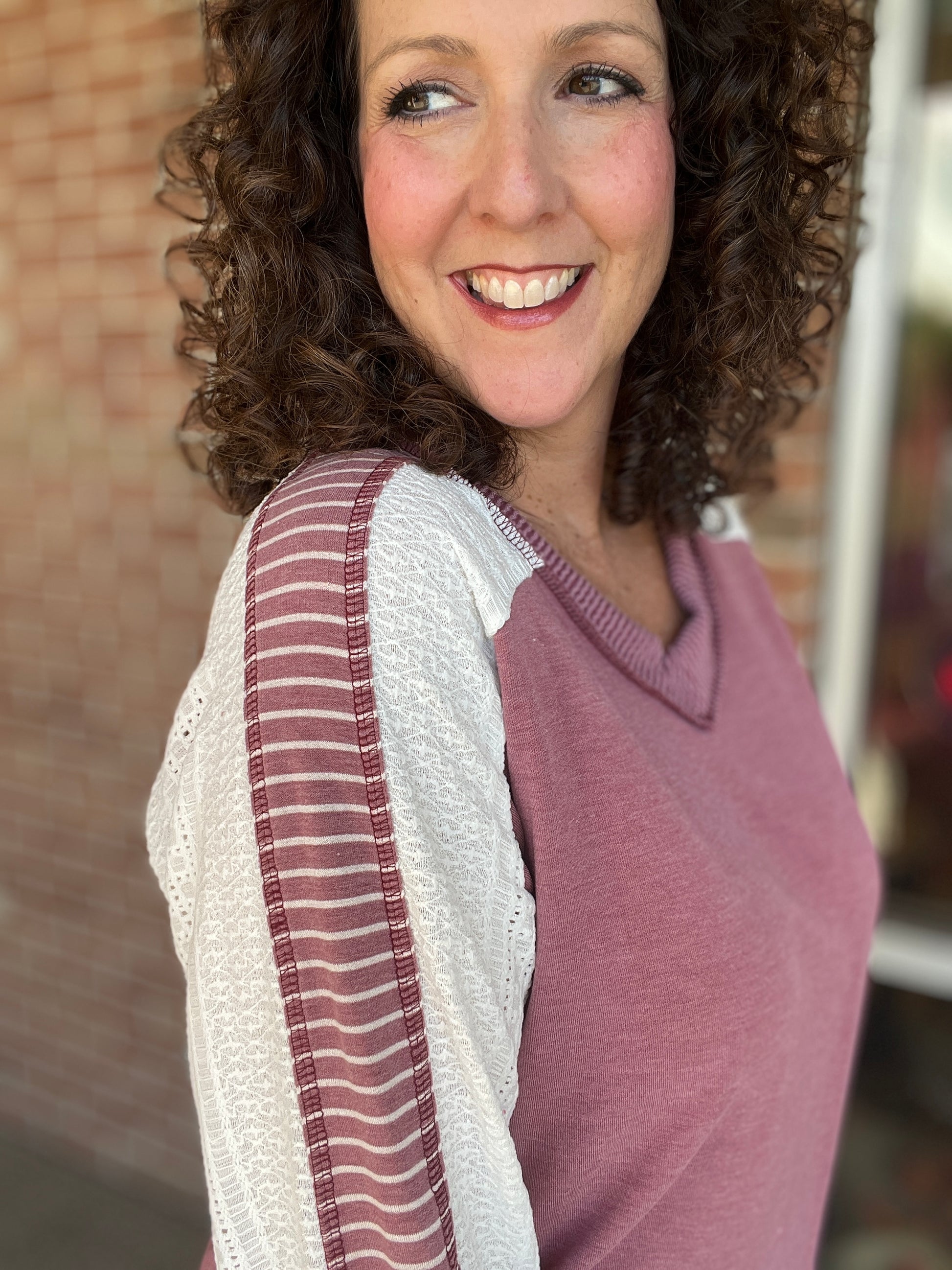 Embrace effortless charm with this Mixed Fabric & Lace Top. Crafted from soft corded fabric, it feels gentle against your skin while lace details on the sleeves add a flirty touch. Its relaxed fit keeps you comfy and ready for anything—perfect for days when you want to look cute without trying too hard.