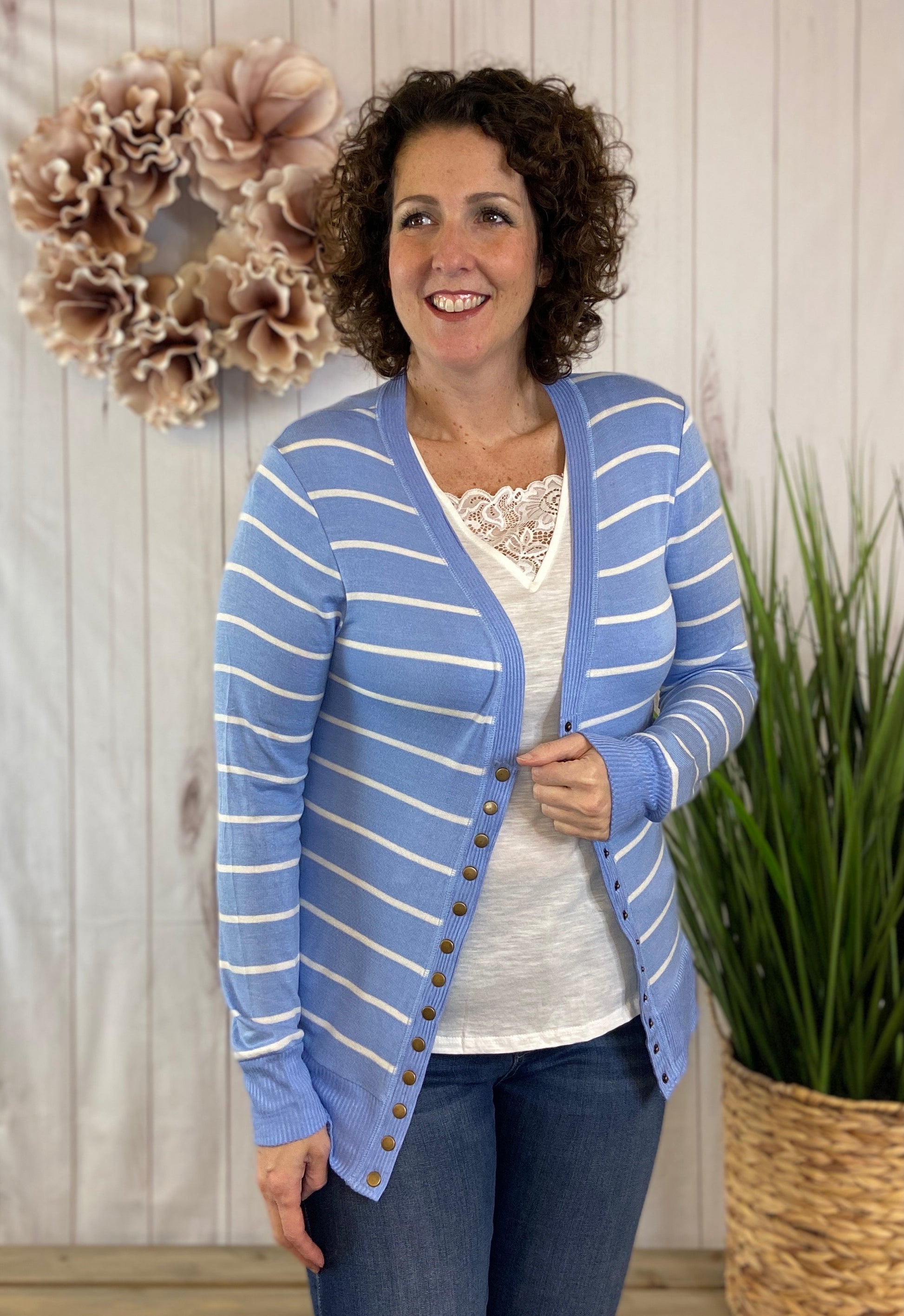 Spring Striped Snap Button Cardigan - SPRING BLUE